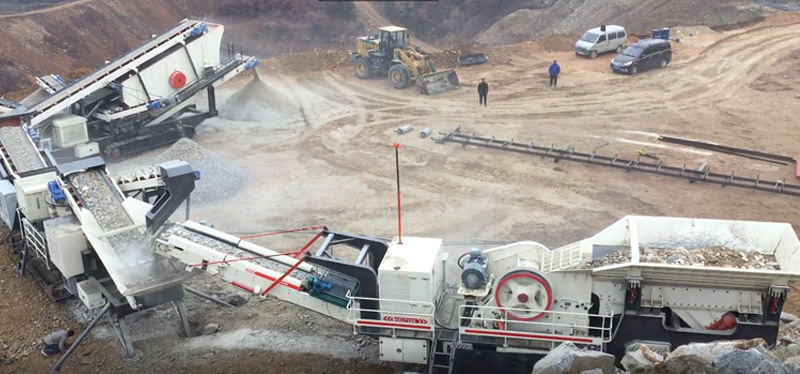 配置:移動重錘式破碎機+給料機+輸送帶+振動篩(單機組)