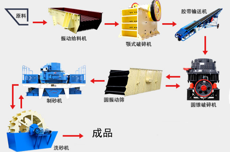 青石本身耐磨度高,抗壓強度大,用于破碎青石的的設備主要有鄂式破碎機、圓錐破碎機和制砂機,另外還有用到給料機、輸送機和振動篩等設備。