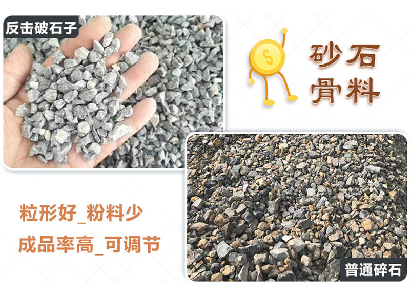 反擊式破碎機(jī)一直被稱作砂石整型機(jī),由于出料粒型好,大小均勻,一直在砂石機(jī)械行業(yè)有著獨(dú)特的地位。很多人購買石子的時候也會選擇反擊破碎石,因此反擊破碎石市場行情更好且售價(jià)也更高一些。那么反擊破碎石和普通碎石的區(qū)別大嗎?