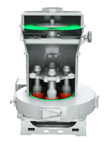 雷蒙磨為立式結(jié)構(gòu),設(shè)備下部有電機(jī)帶動(dòng)內(nèi)部磨輥和磨盤不斷旋轉(zhuǎn)來將物料粉碎,粉碎后在進(jìn)風(fēng)口將物料吹起并經(jīng)過分離器對(duì)粗細(xì)粉分離,之后的成品物料通過出風(fēng)口帶走收集起來,雷蒙磨分級(jí)的進(jìn)出料口的設(shè)計(jì)是比較科學(xué)的,也因此可以提高設(shè)備的生產(chǎn)效率。
