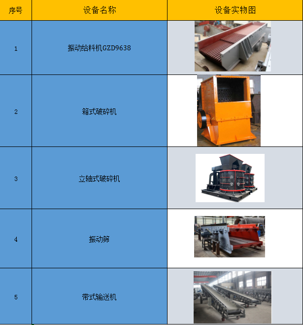 石料首先使用振動給料機送至箱式破碎機進行破碎,之后進入立軸式破碎機二級破碎,經(jīng)過振動篩篩分物料,把不滿足用料大小的再次破碎,至用料需求大小后即可,這套設(shè)備更省能耗,成本更低