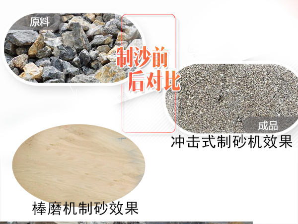 棒磨機可以將25mm的物料破碎到0.833-0.147mm之間,破碎比大,成品粒度小,沖擊式制砂機出料粒度在4.5mm左右,粒度相對較大。