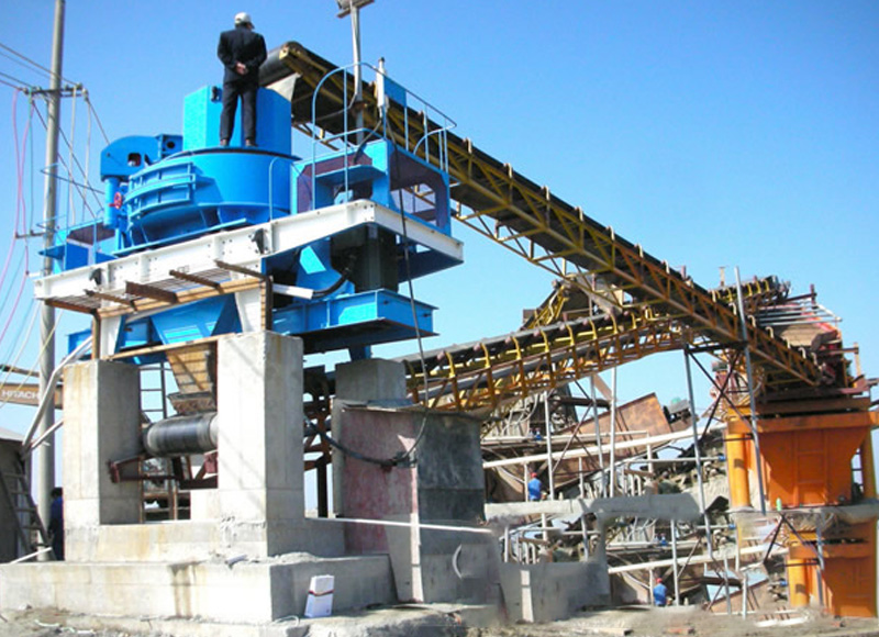 制砂是最后一步也是較為關(guān)鍵的一步,由于花崗巖物料硬度較高,一般選擇HVI沖擊式制砂機,抗壓強度大,采用四口葉輪深腔設(shè)計,進料快,破碎效率高,破碎后的成品粒型好,成品率高,機器不易磨損。制砂后的物料需要經(jīng)過洗砂機洗掉雜志和泥土,符合混凝土用砂標(biāo)準(zhǔn)即可。